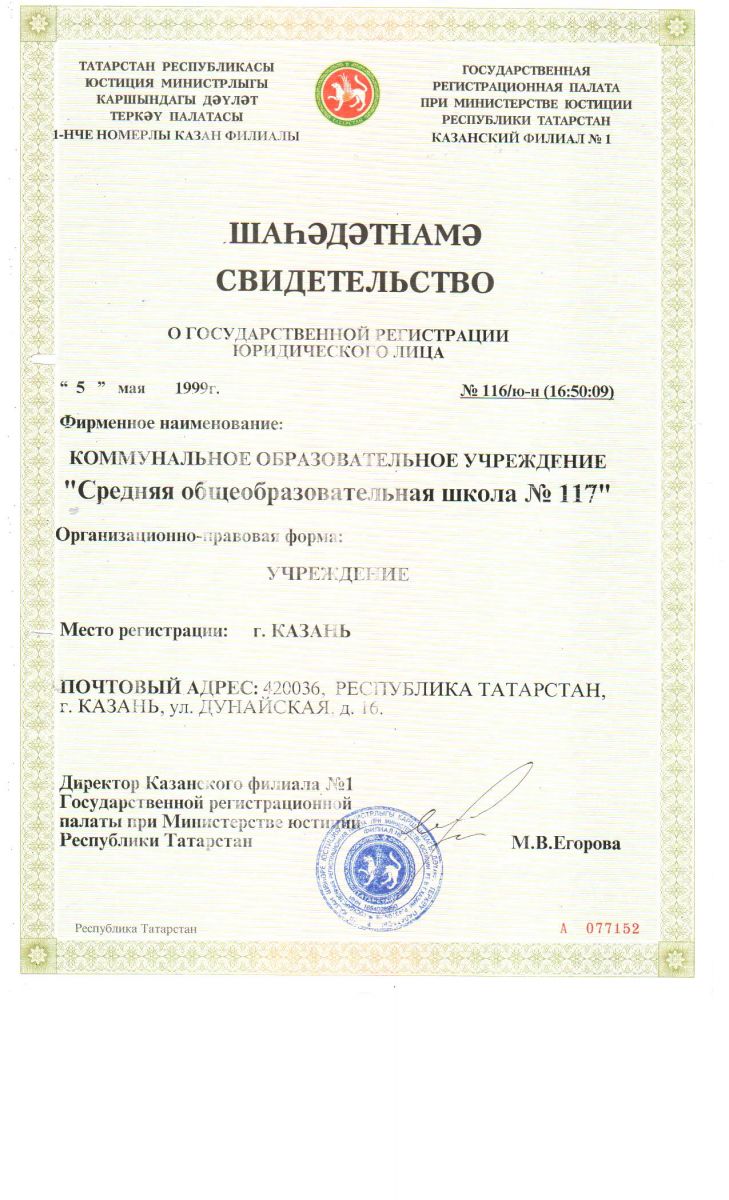 Муниципальное бюджетное общеобразовательное учреждение «Средняя общеобразовательная школа №117» Авиастроительного района г. Казани