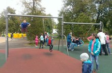 Замечательный парк расположен у ДК Химиков, поэтому ребята пришкольного лагеря с удовольствием провели время в нем. Катались на качелях, каруселях, бегали по лабиринтам, спускались с горок, лазали по веревкам. А в конце было вкусное мороженое.