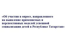 Департамент государственной политики в сфере защиты прав детей совместно с обществом ограниченной ответственностью «Оценка качества образования» (далее - ООО «ОКО») в целях оценки степени внедрения и достаточности существующего нормативно-методического обеспечения мероприятий по распространению на территории Российской Федерации современных моделей успешной социализации детей в рамках Федеральной целевой программы развития образования на 2011-2015 годы проводит опрос, направленный на выявление применяемых и перспективных моделей успешной социализации детей в субъектах Российской Федерации.