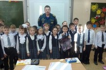 26 февраля инспектор МЧС Ящук Владимир Дмитриевич вручил ученику 1А класса Галимову Данису подарок за победу в конкурсе рисунков "Буду бдительным на льду"и провел с учениками профилактическую беседу