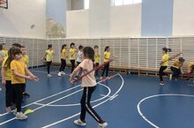 В начальных и средних классах были проведены веселые старты, в старших классах были соревнования по волейболу.