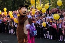 Поздравялем всех с Новым учебным годом! Желаем успехов! К нам на линейку приходили "Маша и Медведь" .