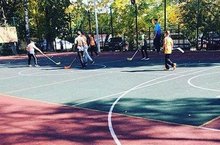 в рамках "Урока Добра" состоялся мастер- класс по флорболу на спортивной площадке школы.