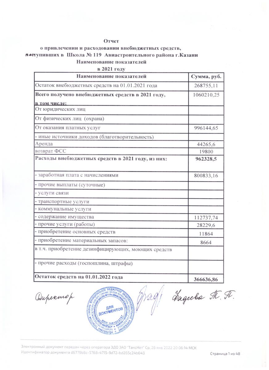 Отчет о привлечении и расходовании внебюджетных средств за 2021 г.