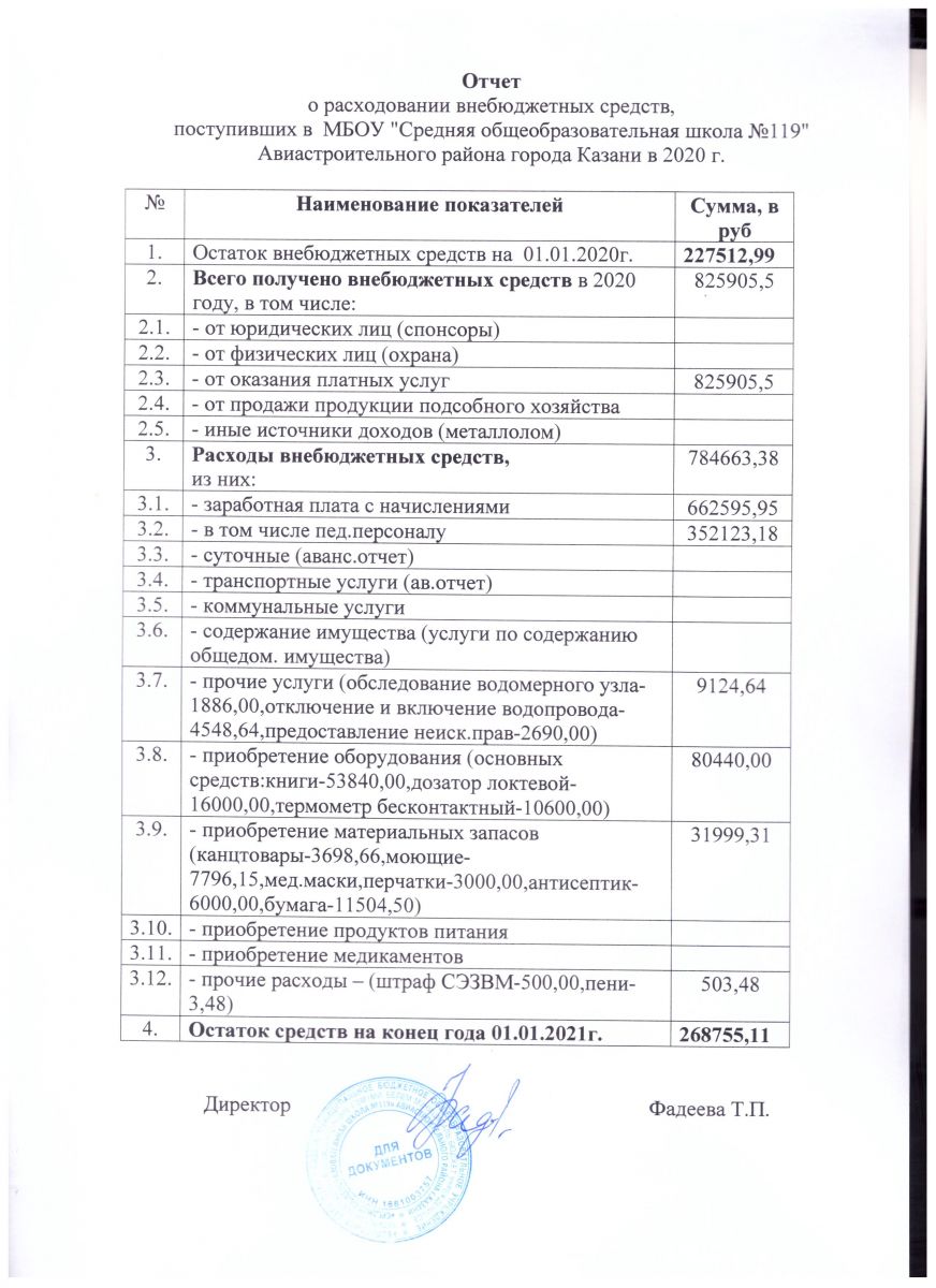 Отчет о привлечении и расходовании внебюджетных средств за 2020 г.