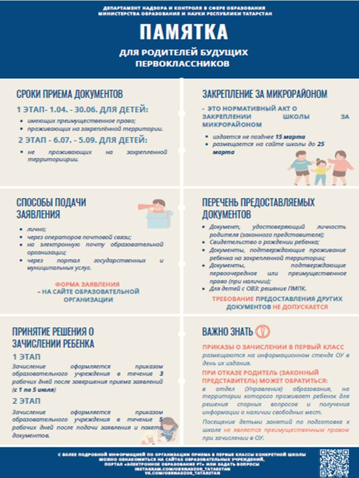 Сроки подачи заявлений от родителей определены приказом Минпросвещения РФ от 02.09.2020 №458 «Об утверждении Порядка приема на обучение по образовательным программам начального общего, основного общего и среднего общего образования».