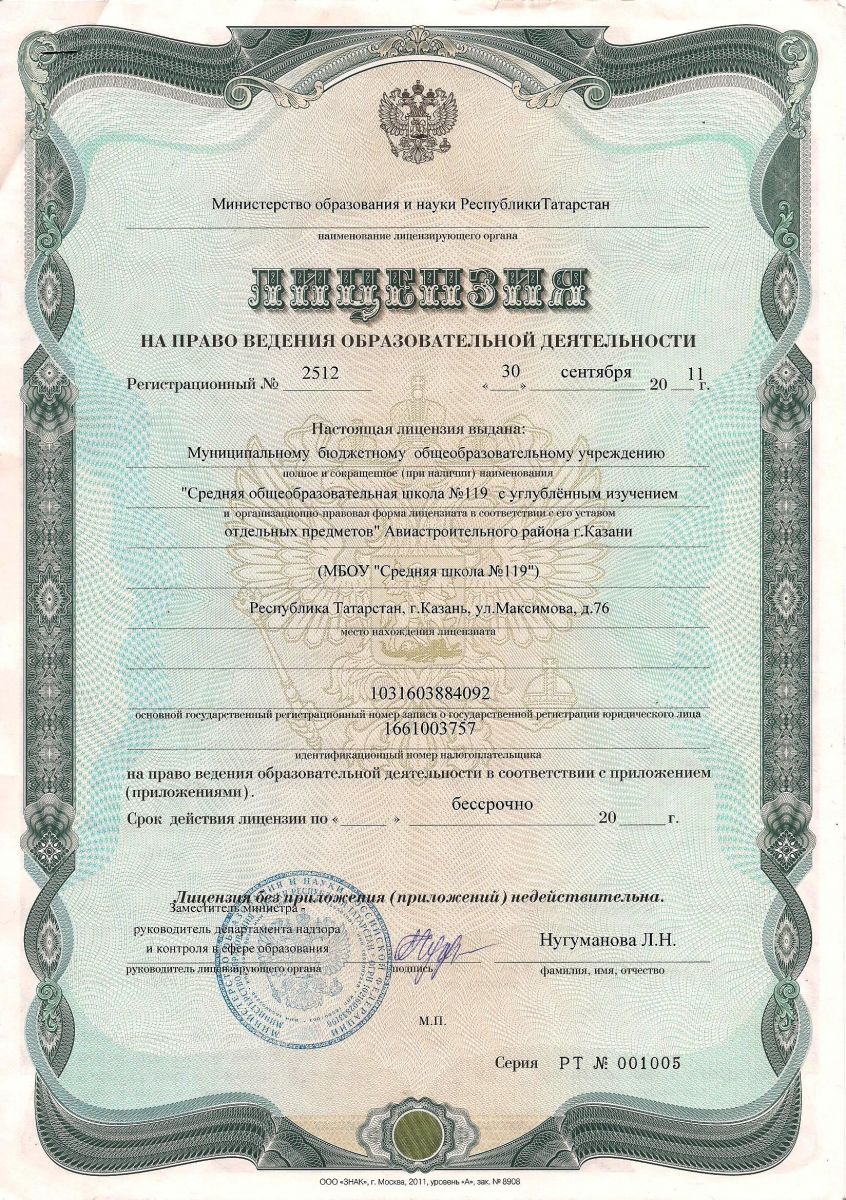 Муниципальное бюджетное общеобразовательное учреждение "Средняя общеобразовательная школа № 119" Авиастроительного р-на г.Казани