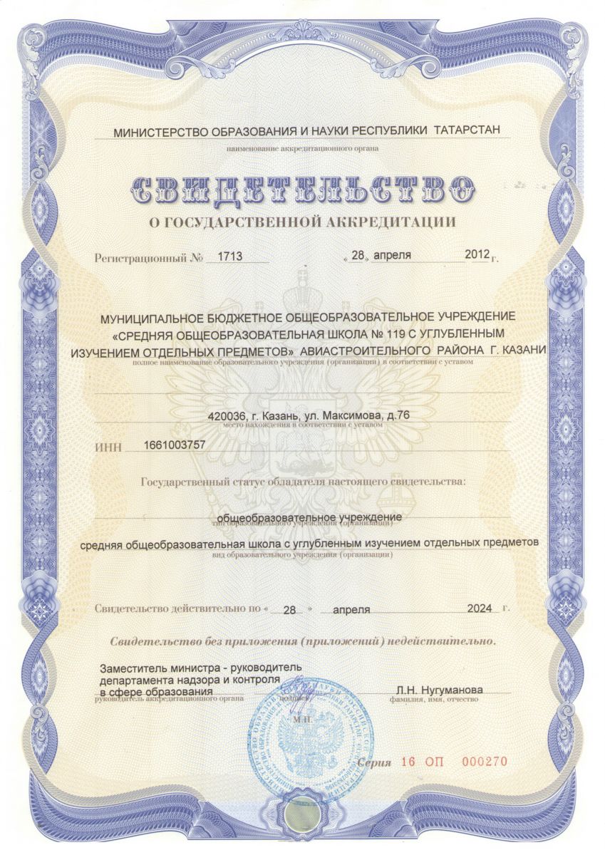 Муниципальное бюджетное общеобразовательное учреждение "Средняя общеобразовательная школа № 119" Авиастроительного р-на г.Казани
