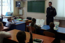 Выступление инспектора полка ДПС перед учащимися школы по профилактике дорожного травматизма 14.03.2016