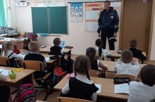 Лекцию-беседу по безопасности на дорожного движения с обучающимися 1 класса МБОУ «ООШ № 168» провел Григорьев Александр Евгеньевич, заместитель командира роты ГИБДД.