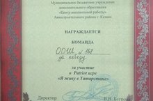 Поздравляем команду 7 класса МБОУ «ООШ № 168», которая стала победителем в Patriot игре «Я живу в Татарстане», проходившей 24.01.2019 г. в ЦВР Авиастроительного района. Выражаем благодарность классному руководителю 7 класса Зиятдиновой Л.Р., подготовившей команду.
