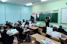 Инспектор ГИБДД А. М. Фомин провёл профилактическую беседу с обучающимися школы по соблюдению ПДД.