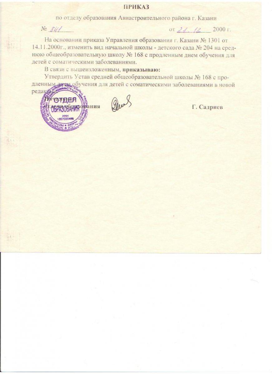 Муниципальное бюджетное общеобразовательное учреждение "Основная общеобразовательная школа №168 с продлённым днём обучения для детей с соматическими заболеваниями"