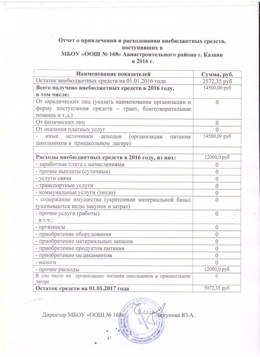 Отчет о привлечении и расходовании внебюджетных средств за 2016 год