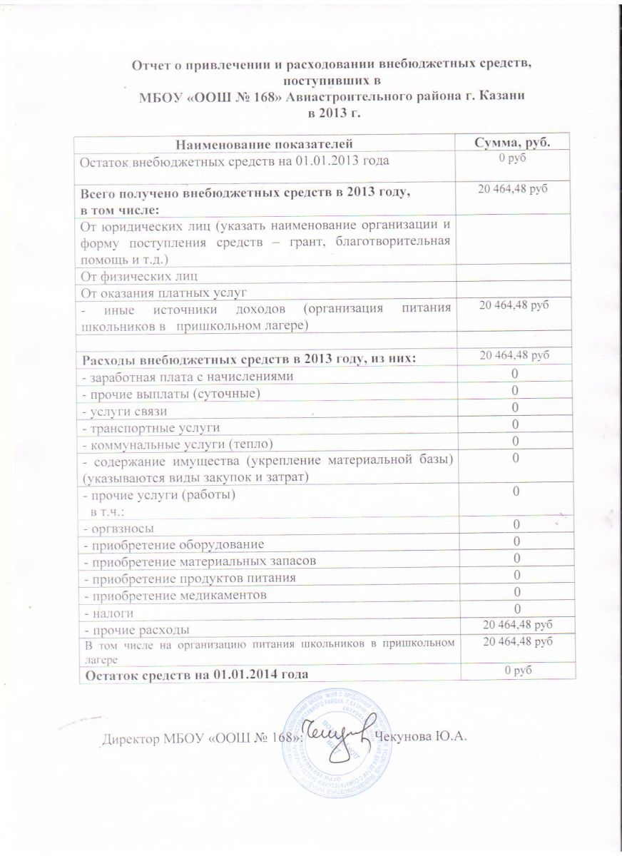 Отчет о привлечении и расходовании внебюджетных средств за 2013 год