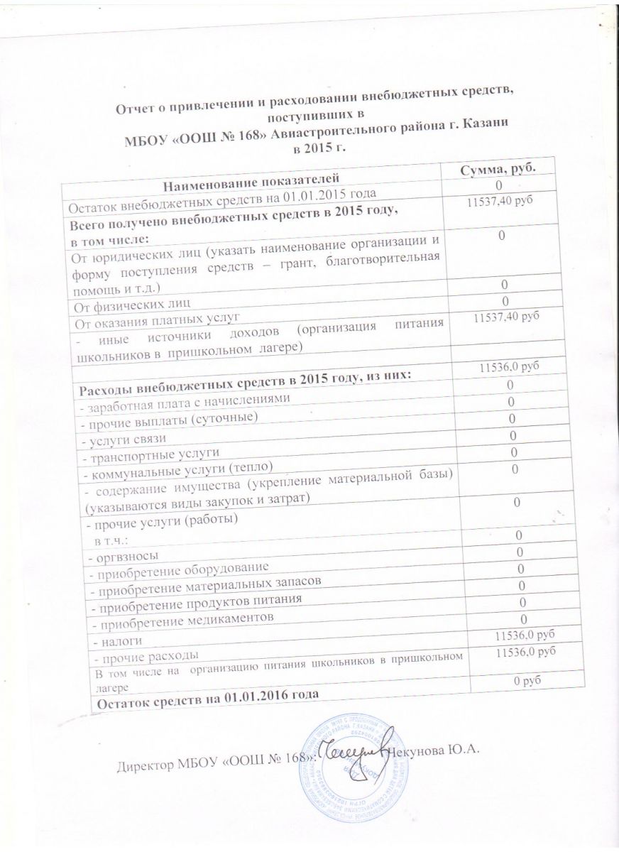Отчет о привлечении и расходовании внебюджетных средств за 2015 год