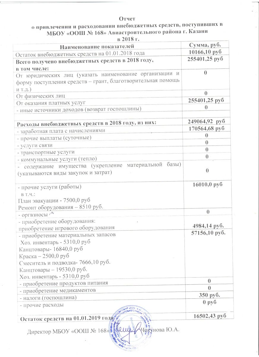Отчет о привлечении и расходовании внебюджетных средств за 2018 год