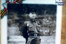 Рядом слева внучка держит в руках штендер своего второго прадеда – Ахметвалеева Валимухамета Ахметвалеевича (1908-1975), красноармейца 157 Гвардейского Стрелкового полка. В боях под городом Старая Русса (Новгородская область), будучи тяжело раненым осколком снаряда в голову, в неравном рукопашном бою убил четырех фашистов. Награжден орденом Славы.