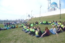 16 апреля стартовала республиканская акция «Весенняя неделя добра - эстафета добрых дел». Город Казань решил стартовать с огромного флешмоба, на котором присутствовали районы нашего города. Сначала дети возле Кремля выложили слова ДОБРО и СПОРТ, а затем станцевали флешмоб на улице Баумана.