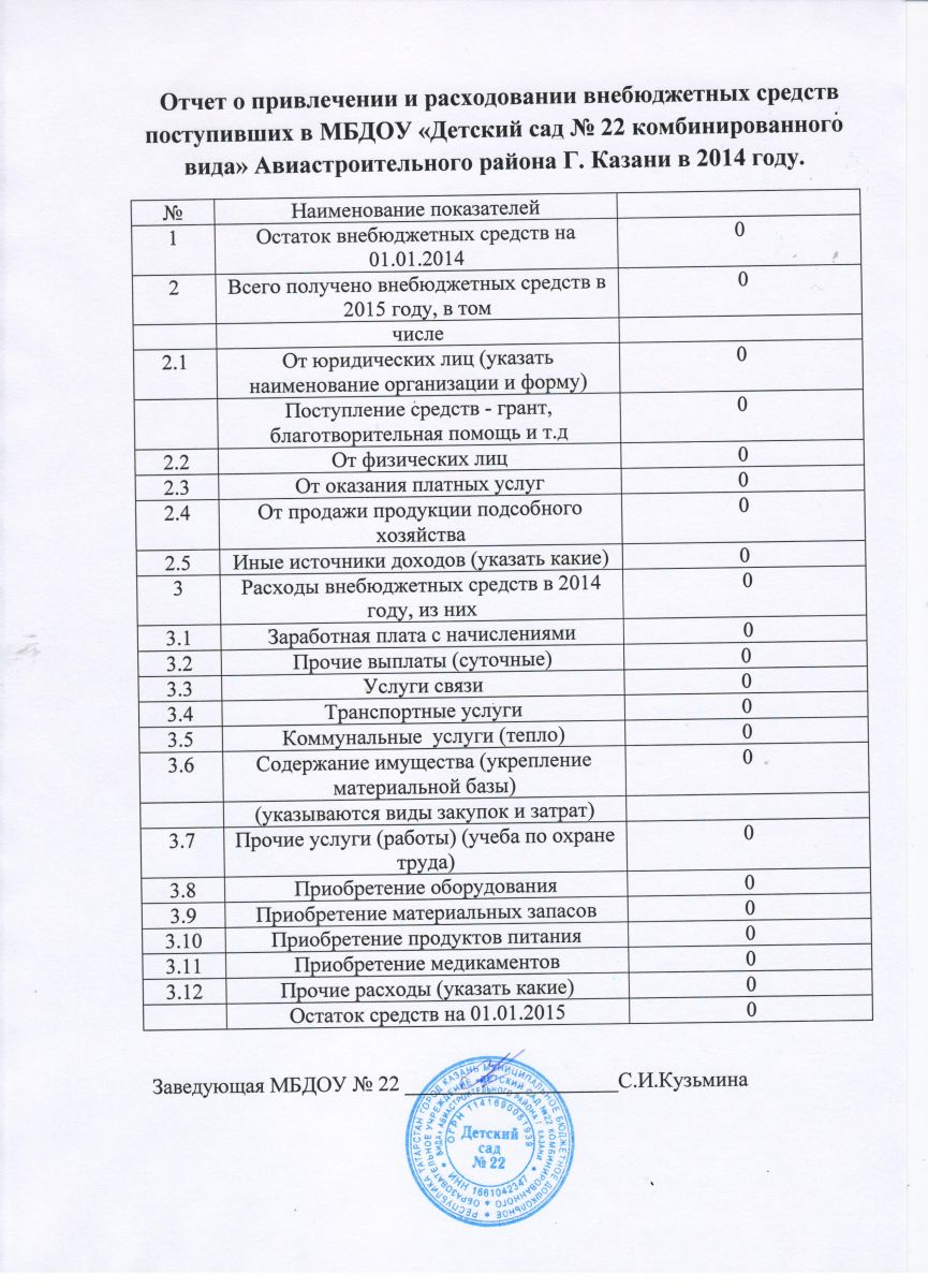 Отчет о привлечении и расходовании внебюджетных средств за 2014 год
