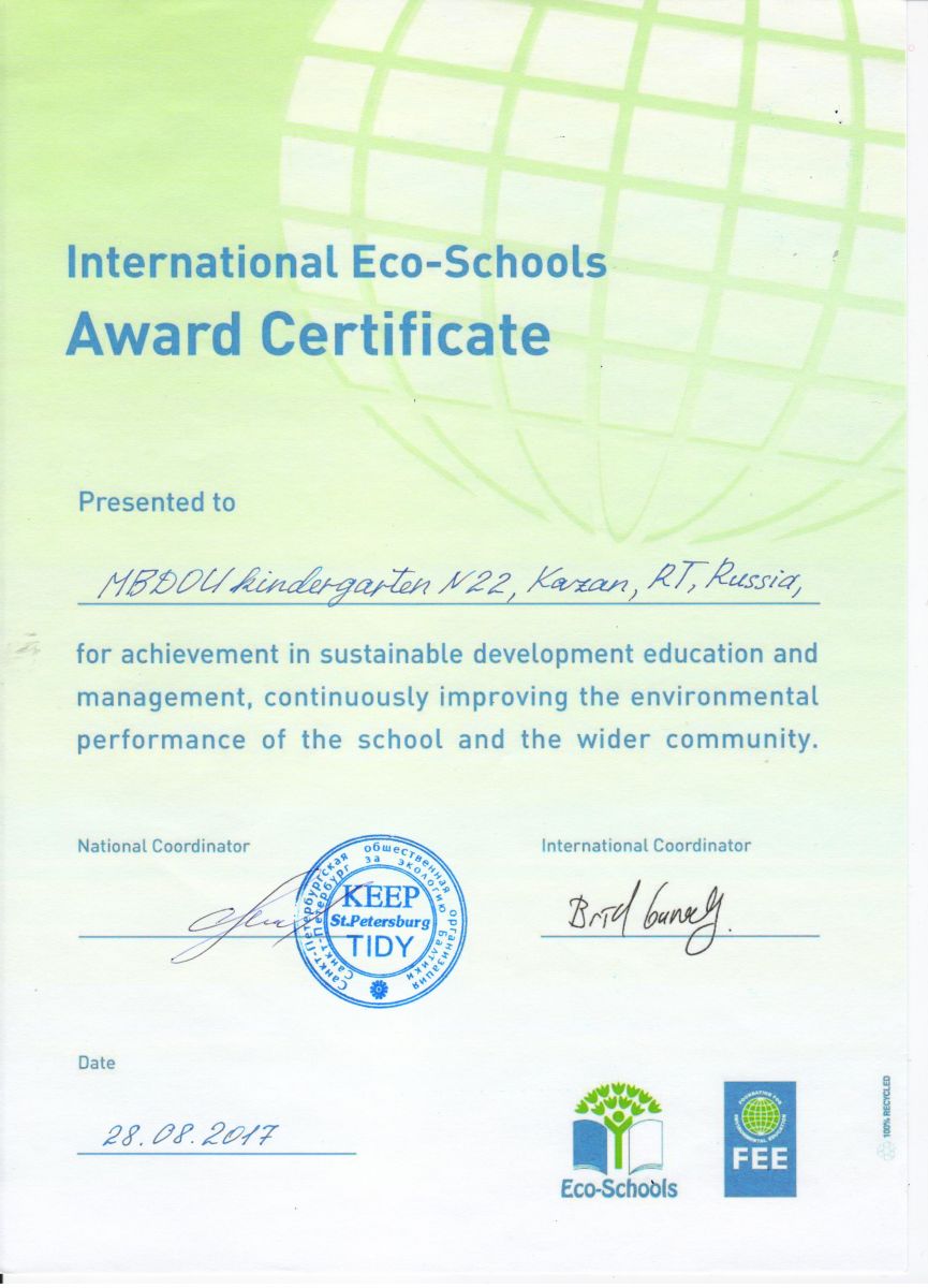 Сертификат к Зеленому флагу