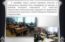 В рамках Всероссийского проекта "Со словарем по жизни" и Всероссийской акции "Грамотным быть модно" в школах Авиастроительного и Ново-Савиновского районов города Казани 9 декабря 2014 года проводился Общероссийский словарный диктант-викторина, который посвящен 200-летию со дня рождения М.Ю.Лермонтова. В акции приняли участие 11 общеобразовательных организаций Авиастроительного района и 16 – Ново-Савиновского района.