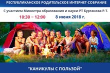 8 июня 2018 года состоится очередное заседание Республиканского родительского интернет-собрания, посвященное организации летнего отдыха и вопросам развития детей в летний период.