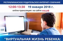 Во исполнение плана работы Министерства образования и науки Республики Татарстан 19.01.2018 с 12.00 до 13.30 состоится Республиканское родительское интернет-собрание «Виртуальная жизнь ребенка: интернет – друг или враг?».