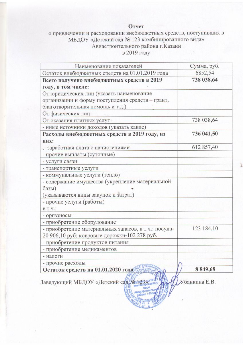 Отчет о привлечении и расходовании внебюджетных средств за 2019 год