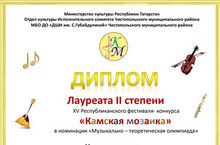 Учащаяся нашей школы приняла участие в республиканском фестивале-конкурсе "Камская мозайка" (преп. Баязитова Г.А.).