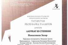 Учащиеся отделения народных инструментов приняли участие в Республиканском конкурсе исполнительского мастерства "Татарстан - Республика талантов" и заняли хорошие места. Поздравляем и желаем дальнейших успехов.
