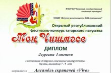 Поздравляем учащихся отделения скрипки и преподавателя Ирину Валериановну, концертмейстера Ваврвару Васильевну с успешным выступлением на открытом республиканском фестивале-конкурсе татарского искусства "Мон, чишмэсе"