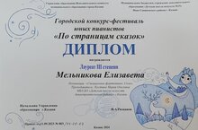 Поздравляем с дипломом лауреата 3 степени в Городском конкурсе юных пианистов "По страницам сказок" ученицу класса преподавателя Костиной М.О. - Мельникову Елизавету!!!