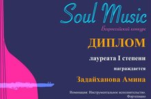 Поздравляем юную пианистку Амину Задайханову и преп. Юлию Анатольевну Сосновскую с успешным выступлением на Всероссийском конкурсе "Soul Music"