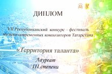 Поздравляем юных пианистов с выступлением на республиканском конкурсе -фестивале музыки современных композиторов Татарстана "Территория таланта" Шарапову Риану, Фатыхову Диану-Погасий Андрея (преп.Логунова Юлия александровна). Желаем вам дальнейших успехов!