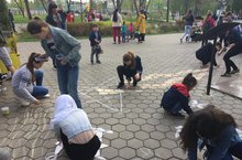 В парке "Крылья Советов" воспитанники отделения изобразительного искусства рисовали на асфальте к празднованию 74-ой годовщины Победы в Великой Отечественной Войны 1941-1945 гг.