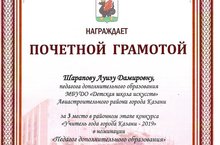 6 февраля 2019 года в ООК «Дуслык» состоялась церемония награждения участников Республиканской и Всероссийской олимпиад по татарскому языку. Для организации и проведения концертной программы были задействованы преподаватели и ученики духового и вокального отдела ДШИ Авиастротельного района. Ведущей программы стала преподаватель вокального отдела ДШИ Авиастротельного района.