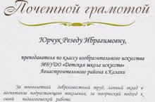 Почетная грамота вручена преподавателю ДШИ Юрчук Резеде Ибрагимовне. 29.08.2016
