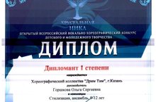 Поздравляем хореграфический коллектив "Дрим-Тим" с 4 местом в Открытом Всероссийском вокально-хореографическом конкурсе Детского и молодежного творчества "Хрустальная Ника" прошедшем в городе Анапа с 30 октября по 4 ноября. Руководитель коллектива :Горшкова Ольга Сергеевна.