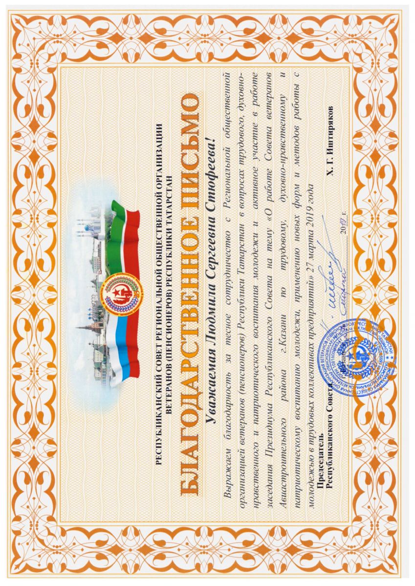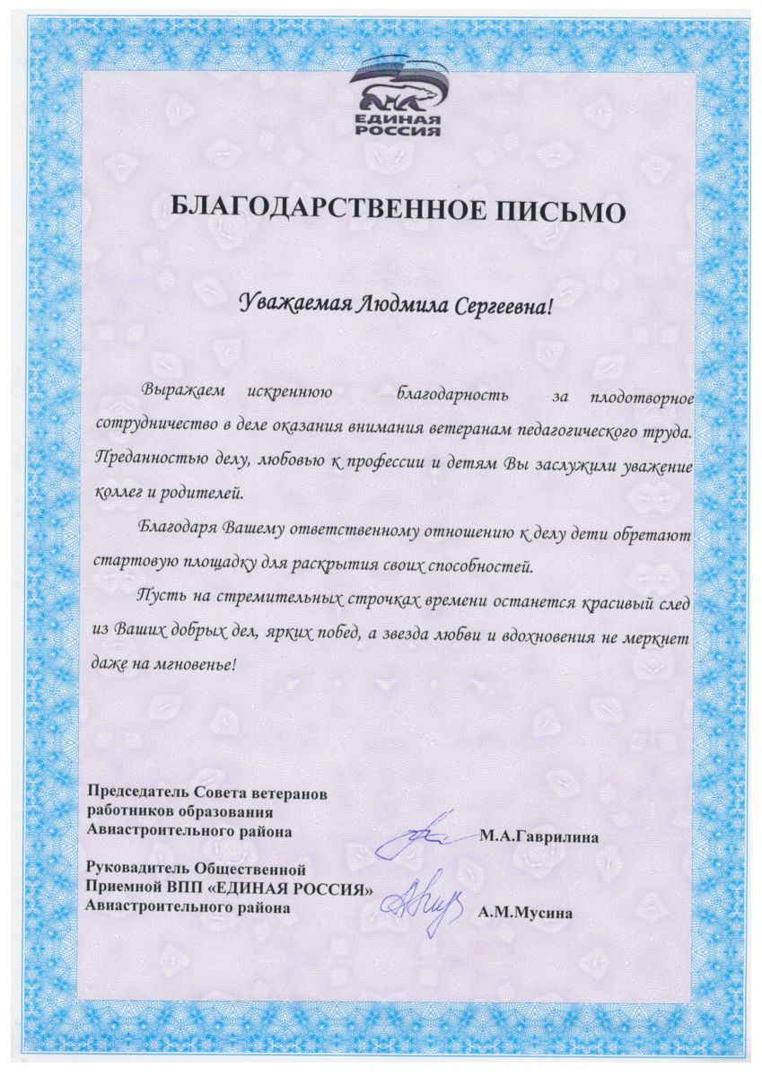 1. Сотрудничество в деле оказания внимания ветеранам педагогического труда, Благодарственное письмо