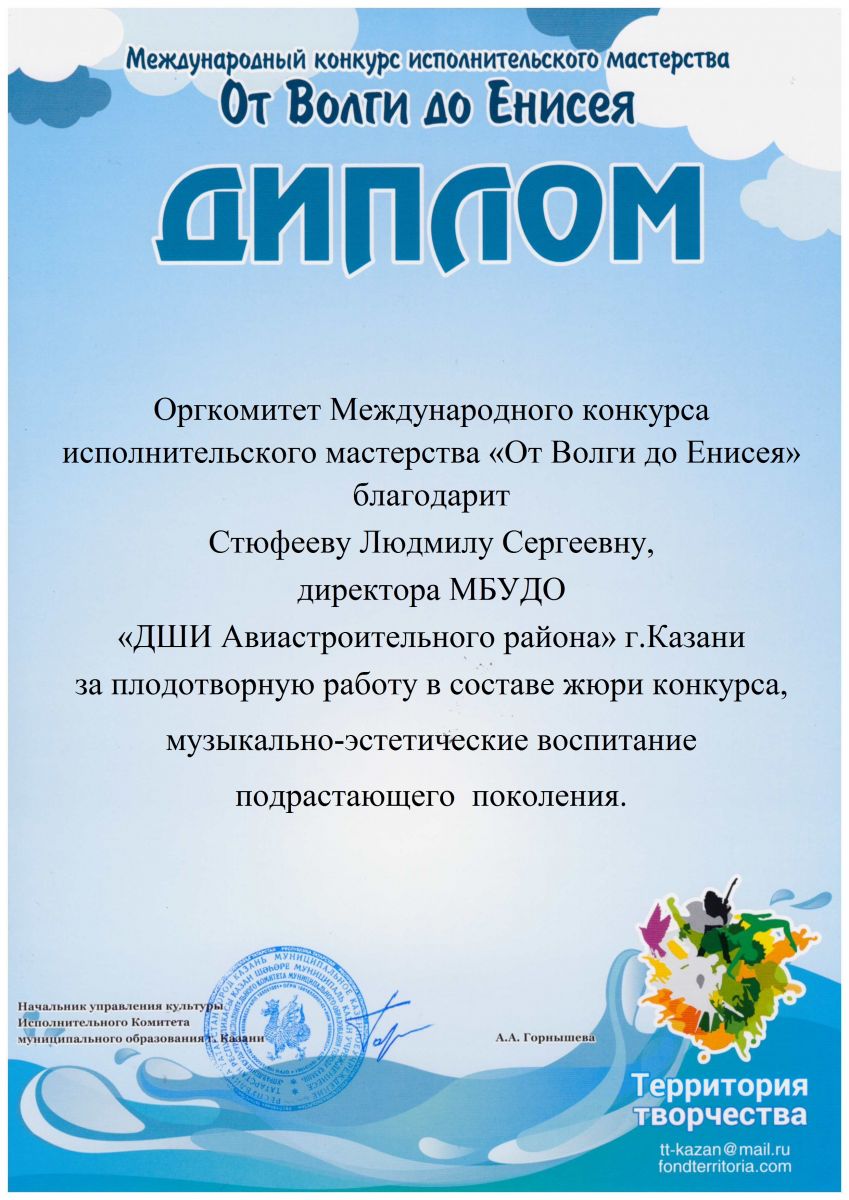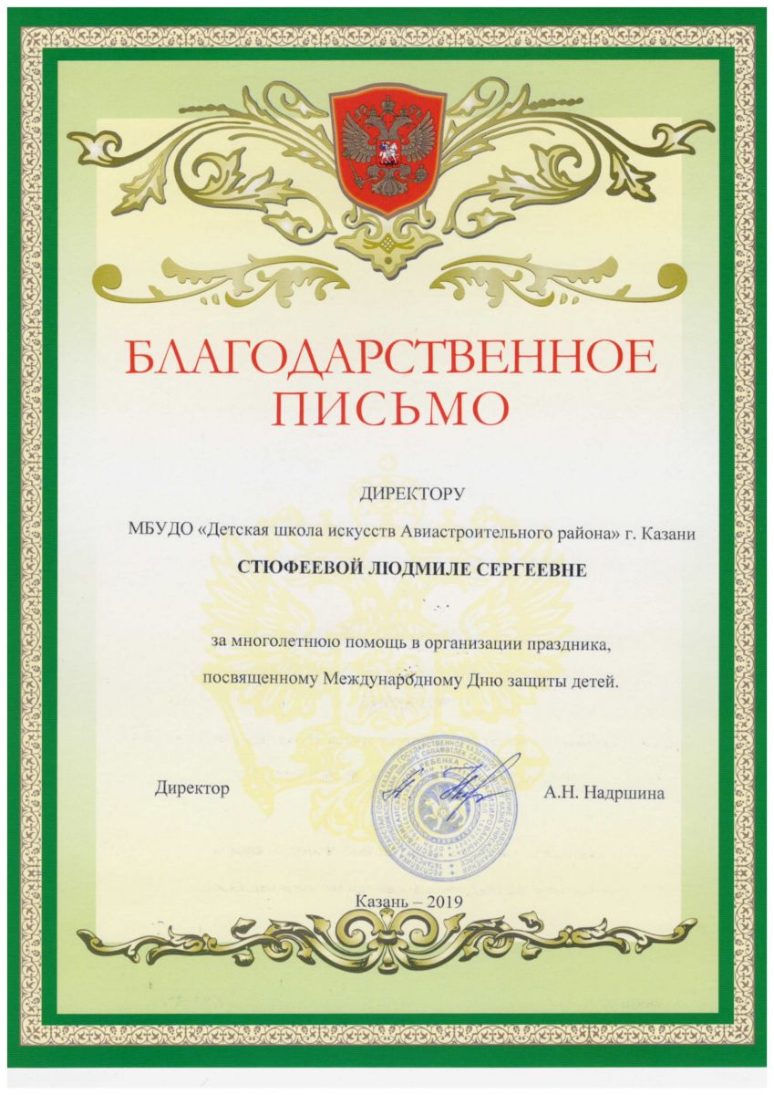 II Республиканский конкурс исполнительского мастерства "Татарстан. Республика Талантов", Благодарственное письмо за высокий уровень профессионализма и компетентную оценку уровня подготовки участников.