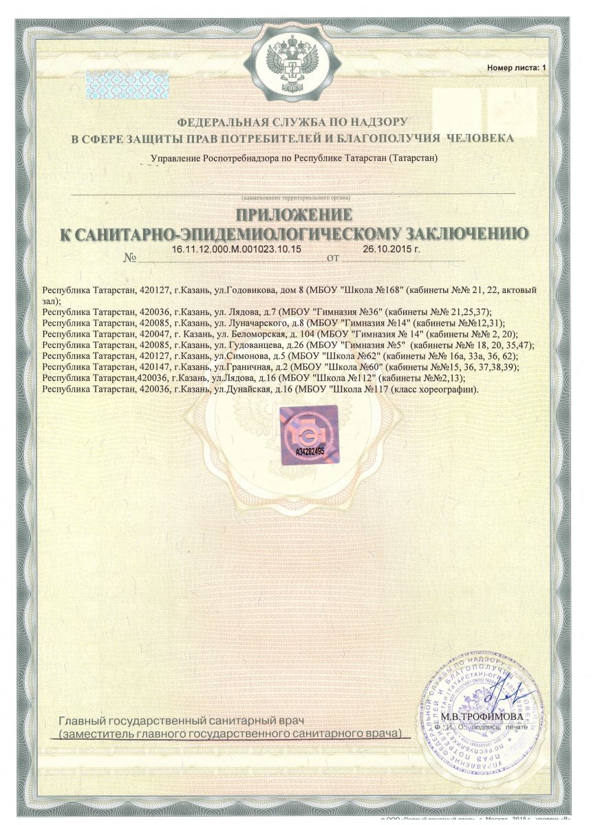 Приложение к санитарно-эпидемиологическому заключению
