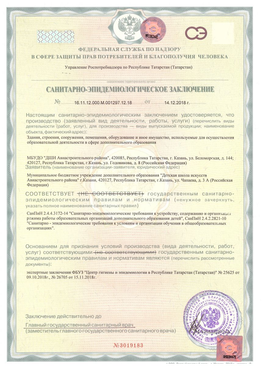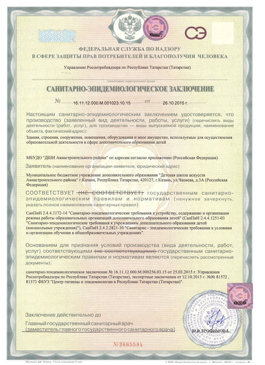 Санитарно-эпидемиологическое заключение о соответствии санитарным правилам зданий, строений, сооружений, помещений, оборудования и иного имущества, необходимых для осуществления образовательной деятельности
