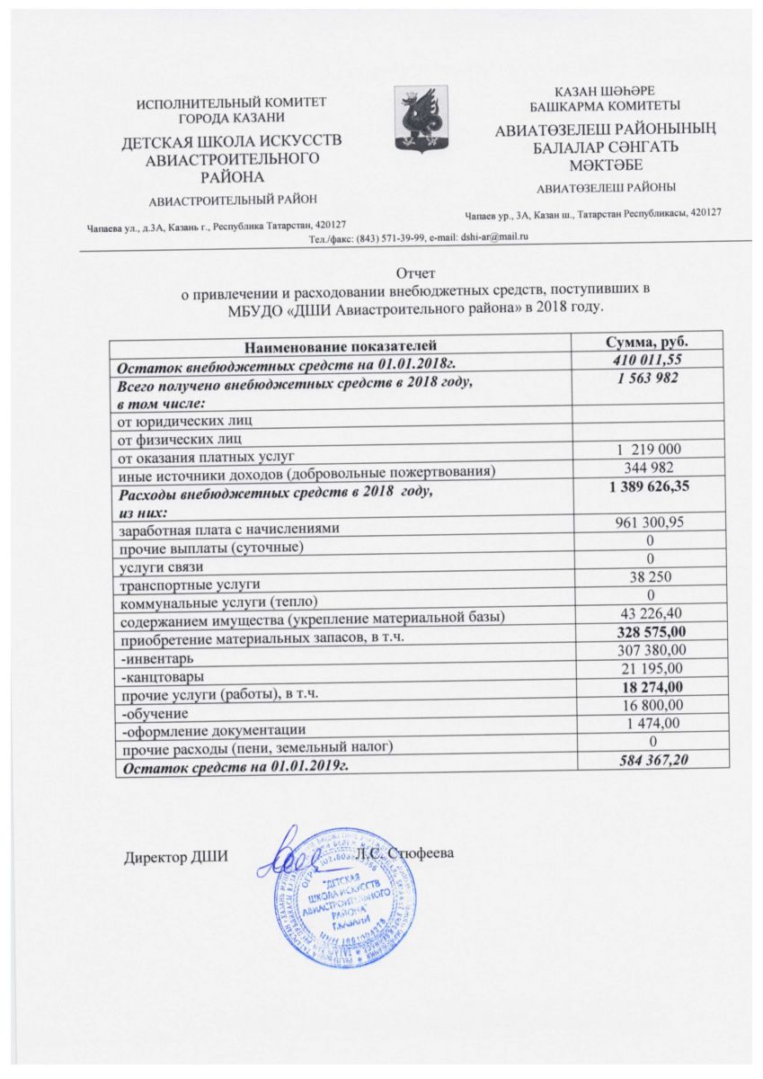 2. Отчёт о привлечении и расходовании внебюджетных средств, поступивших в 2018 году.
