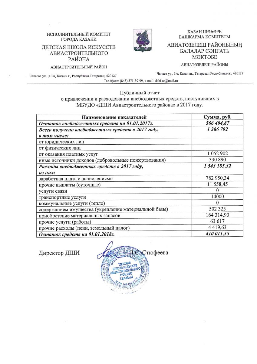 1. Отчёт о привлечении и расходовании внебюджетных средств, поступивших в 2017 году.
