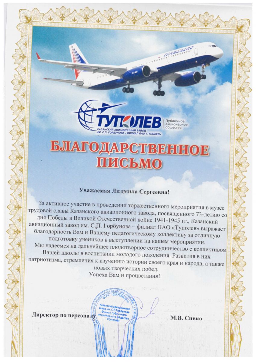 3. Благодаственное письмо Руководителя общественной приемной ВПП ""Единая Россия" А.М. Мусиной, Председателя совета ветеранов работников образования Авиастротельного района М.А. Гаврилиной