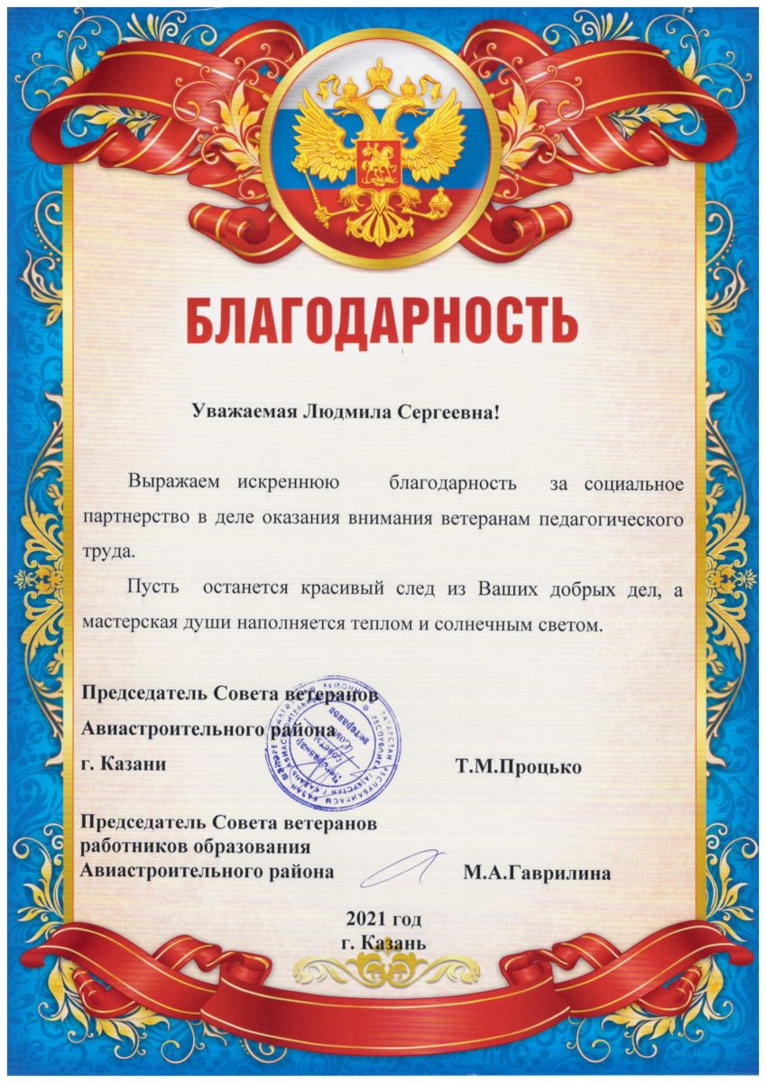 3. Благодарность за социальное партнерство в деле оказания внимания ветеранам педагогического труда, Благодарность