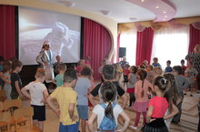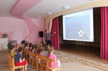 В детском саду реализуется проект "Золотой мячик", посвященный проведению ЧМ по футболу - 2018, который пройдет в Казани этим летом. Сегодня дети подготовительных групп, посмотрели фильм о возникновении этой игры, о правилах, о знаменитых футболистах, о сборной России.