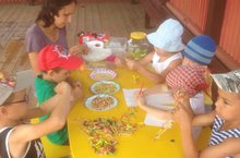Сегодня в детский сад пришел долгожданный гость-царь Нептун.Дети веселыми играми и танцами отметили его день рождения и подарили ему настоящую морскую пену, наловили много рыбы и остудили гостя из водных пистолетов!