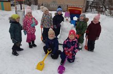 Кто сказал, что снег бывает только белым? Если художественные способности малышей и педагогов объединить, могут получиться снежные шедевры. Главное – создавать шедевр сообща, внося свою посильную лепту и с хорошим настроением.